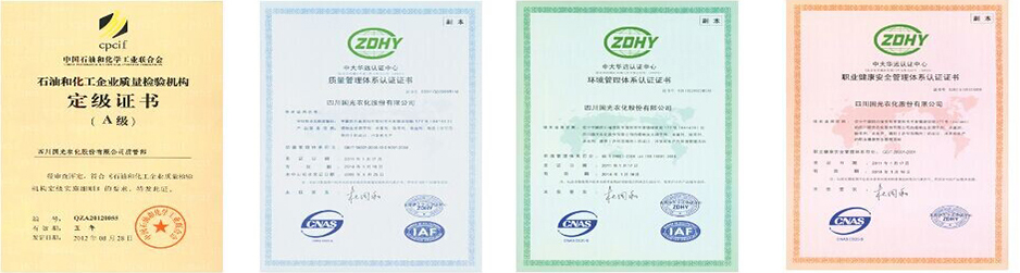 國光視產(chǎn)品為企業(yè)生命。公司通過了ISO19001質(zhì)量管理體系認(rèn)證,對(duì)產(chǎn)品生產(chǎn)流程進(jìn)行嚴(yán)格的質(zhì)量管理。國光質(zhì)管部是國家石油和化學(xué)工業(yè)協(xié)會(huì)認(rèn)定的“A級(jí)質(zhì)檢機(jī)構(gòu)”,配備了Agilent1100、1200A、1200B、1200C液相色譜儀、Agilent 6820氣相色譜儀、原子吸收分光光度計(jì)、原子熒光光譜儀等現(xiàn)代化的檢驗(yàn)檢測設(shè)備。同時(shí)強(qiáng)化企業(yè)標(biāo)準(zhǔn)化建設(shè)和計(jì)量管理以確保產(chǎn)品質(zhì)量。 |