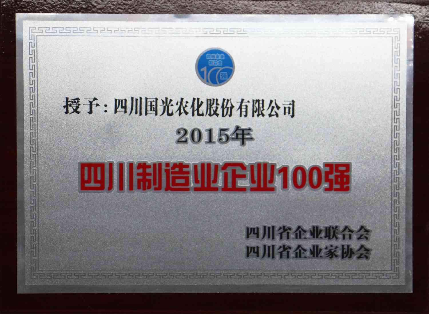 2016年1月15日,由四川省企業(yè)聯(lián)合會(huì)/企業(yè)家協(xié)會(huì)召開的第八屆三次理事會(huì)全體大會(huì)暨2016年企業(yè)家年會(huì)上國(guó)光公司及子公司分別榮獲2015年《四川制造業(yè)企業(yè)100強(qiáng)》、《四川服務(wù)業(yè)企業(yè)100強(qiáng)》稱號(hào)。