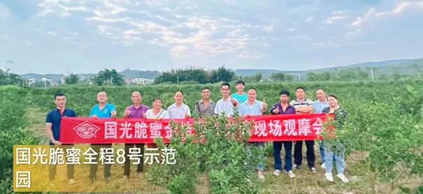 6月14日,國光農(nóng)化在廣西柳州召開“國光脆蜜金桔全程調(diào)控方案8號園-階段性驗收觀摩會”,10余名種植大戶參會,高度認可紛紛認購使用我司方案。國光在當(dāng)?shù)匾呀?/span>200余個脆蜜金桔全程調(diào)控方案示范園!