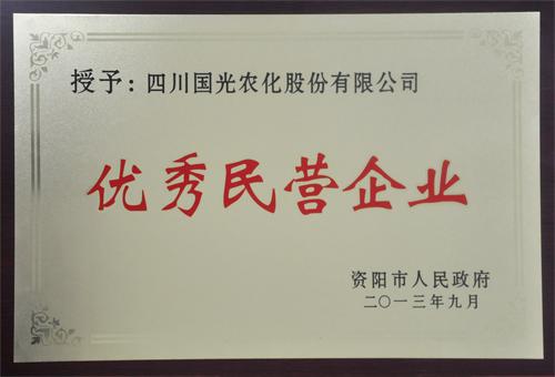 為表揚先進(jìn),樹立典型,做大做強民營企業(yè),推動民營經(jīng)濟大發(fā)展、大提高,資陽市人民政府于2013年9月29日召開會議,對四川國光農(nóng)化股份有限公司等20戶“優(yōu)秀民營企業(yè)”予以表彰。 同時,會議要求各級各部門解放思想、更新觀念,保證民營企業(yè)依法平等使用生產(chǎn)要素、公平參與市場競爭、同等受到法律保護,進(jìn)一步激發(fā)民營經(jīng)濟的創(chuàng)造活力和巨大潛力,把民營經(jīng)濟打造為資陽市經(jīng)濟增長的主體力量。