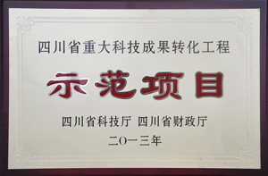 我公司采用自主知識產(chǎn)權(quán)研發(fā)的科技新產(chǎn)品榮獲2013年度“四川省重大科技成果轉(zhuǎn)化工程示范項目”稱號。