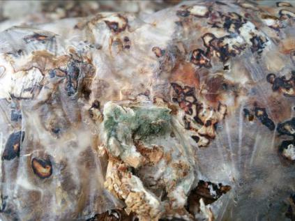 春季溫度回升,菌棒上殘留的菇根等雜物易感染霉菌,發(fā)生霉變。因此,采菇后,要及時清除菌棒上殘留的菇根等雜物,防止雜菌感染。春季危害香菇常見的害蟲主要有菇蚊、菇蠅等,可在出菇間隔期使用氯氰菊酯等低毒農(nóng)藥進(jìn)行防治。