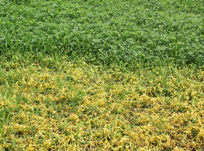 下圖為在禾本科科及麥冬草坪中使用格爾后空心蓮子草表現(xiàn)