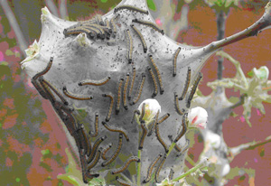 二是人工捕殺,幼蟲白天有群聚網(wǎng)內(nèi)的特性,可以人工摘除網(wǎng)幕,集中燒毀,在分散前及時(shí)捕殺,分散后可采用振樹捕殺,從而減少蟲口密度;